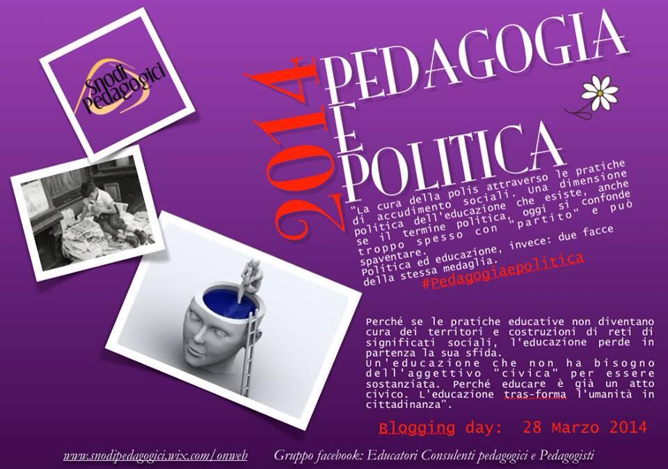 E infine l’ultimo; #pedagogiaepolitica. Abbiamo avuto molti interventi e contributi, le visualizzazioni e i likes sono aumentati molto…e noi ogni giorno seguivamo il “lavoro online” di chi ci precedeva. Un lavoro di gruppo che ci ha coinvolto a turno nel diffondere in modo ragionato e preciso (arrivavano le “bacchettate” di Panzer (alias Sylvia) a chi aveva fatto “doppioni” ma servivano a comprendere…a rodare il meccanismo).